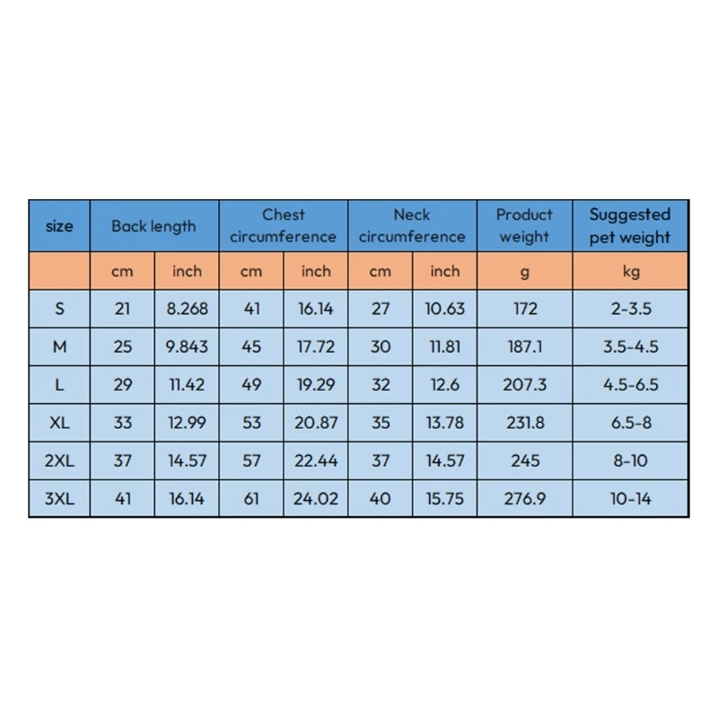 Easy Sizing Guide: We recommend measuring your dog’s neck, chest, and back length before purchasing. Add an extra 2–3 cm for comfort, then refer to our size chart for the best fit. If unsure, feel free to contact us for sizing assistance.